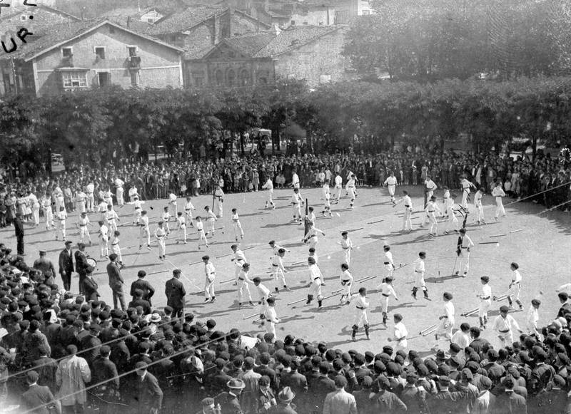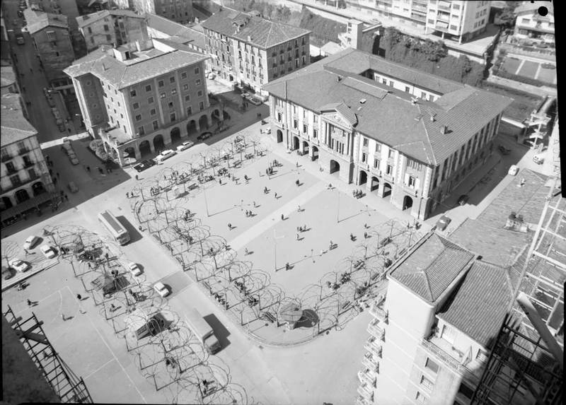 Vista panoramica de la Plaza de Unzaga desde la recién construida torre de Unzaga (1969)